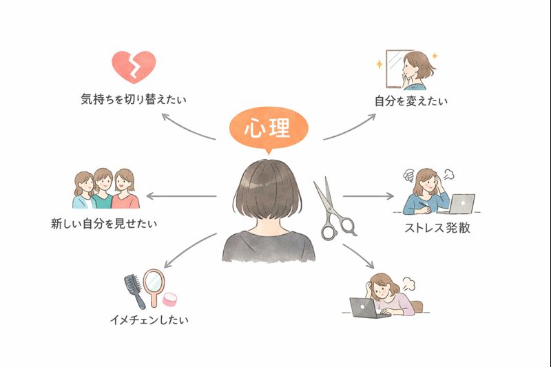 また、髪は服よりも変化がわかりやすく、周囲も気づきやすい特徴があります。気持ちが落ち込んでいるときほど、目に見える変化が欲しくなることがあり、それが髪型チェンジにつながります。